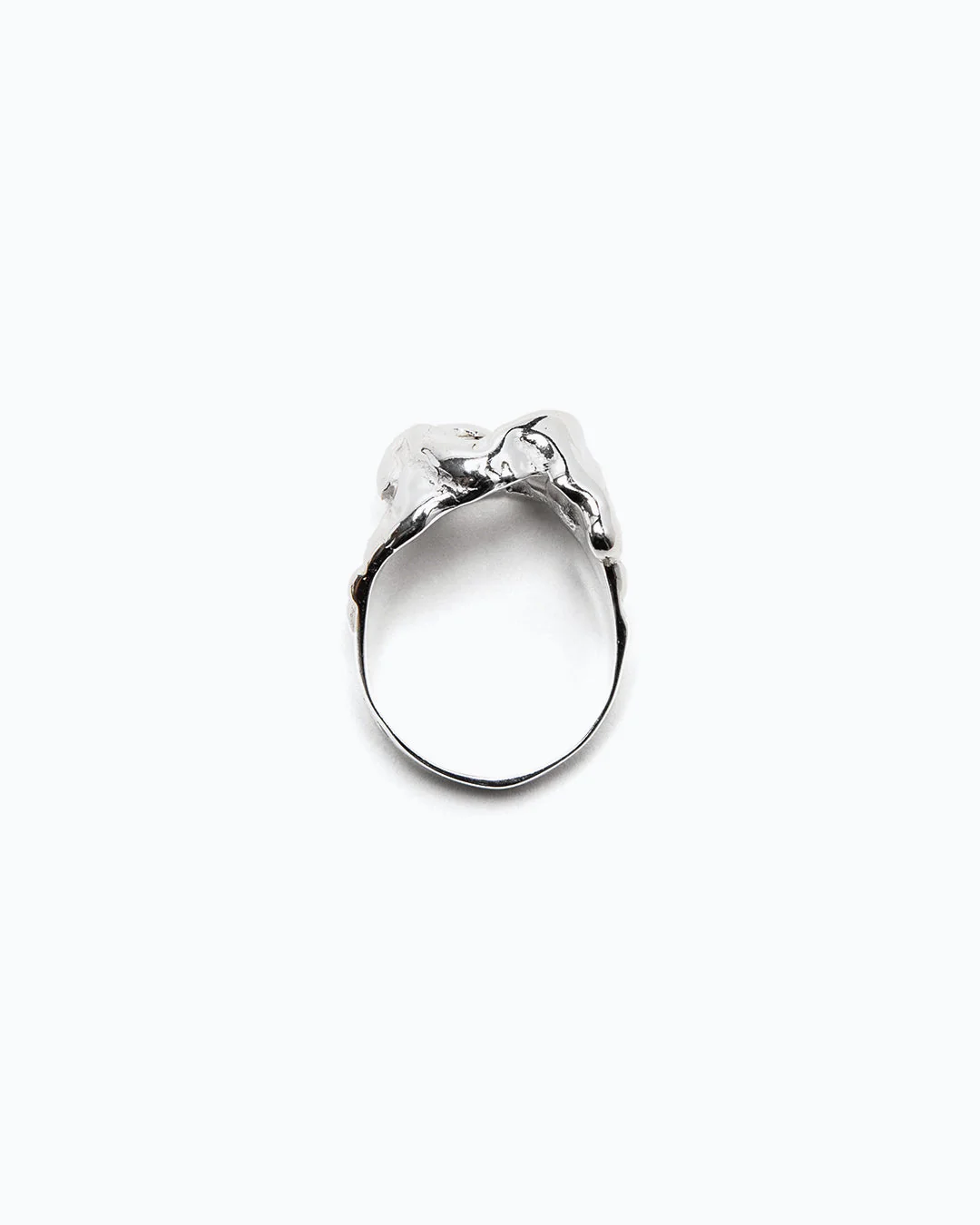 Anillo de plata con forma orgánica que contrasta el elemento pulido con el volumen, disponible en 4 tamaños,
