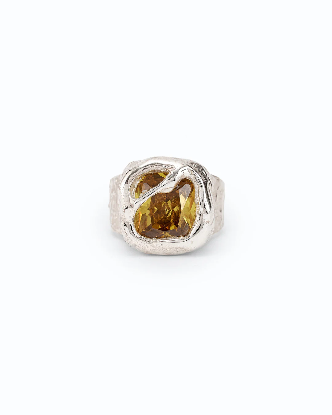 Anillo Signet de plata con circonita, forma orgánica envolviendo la circonita,
