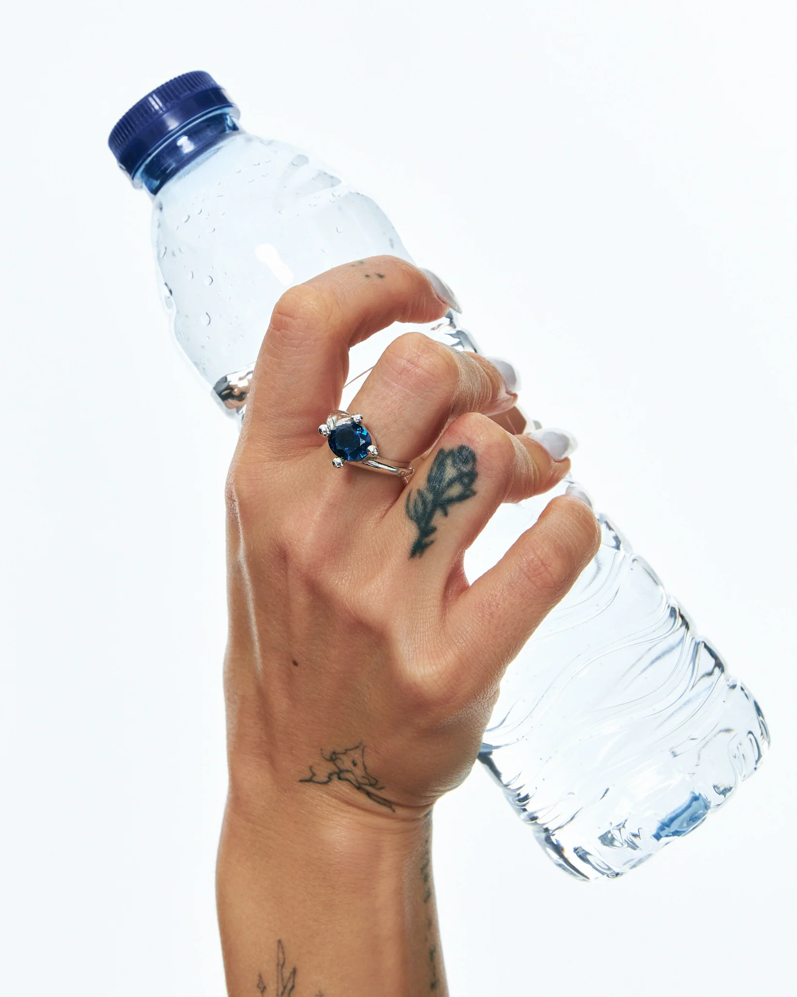 95 % Plata de ley, 5 % Espinela de zafiro